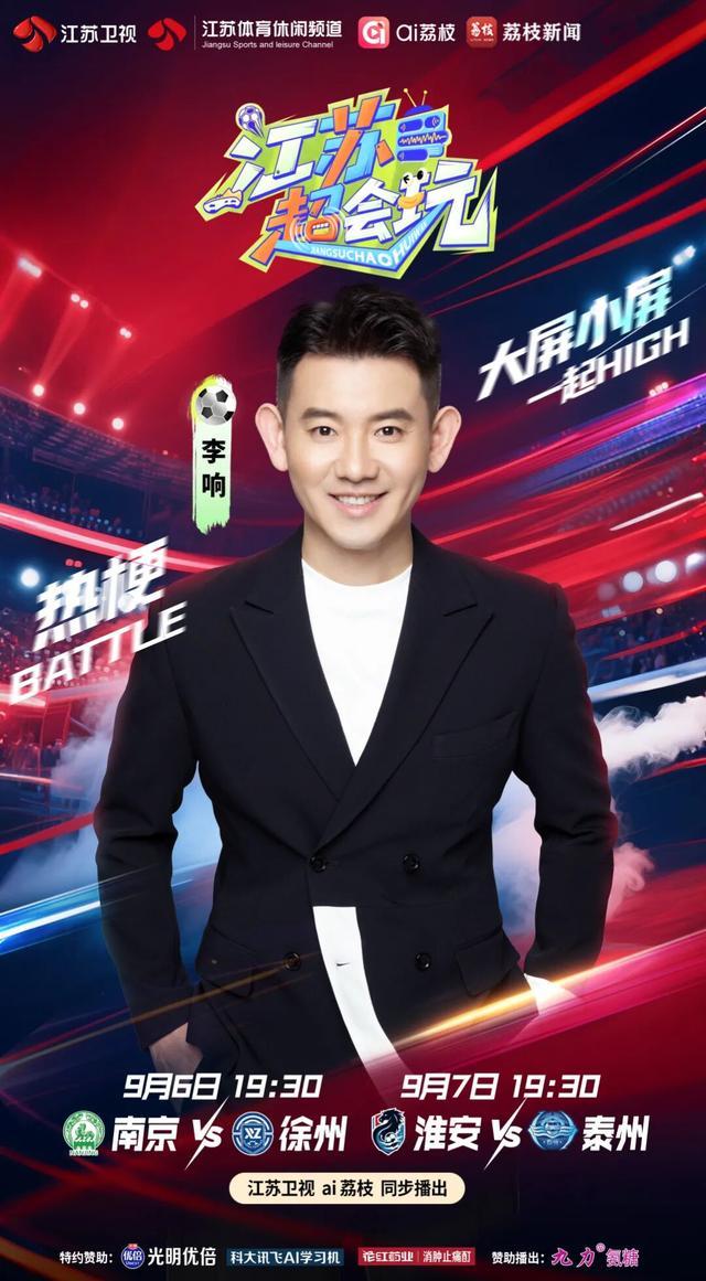 酝酿了半个月的巅峰对决,将在今晚打响!南京队将坐镇南京奥体中心体育场迎接劲敌徐州队的挑战。由江苏卫视、ai荔枝跨屏联动打造的《江苏超会玩》将在19:30对本场比赛进行直播,同时还将小窗直播扬州队VS南通队、无锡队VS连云港队的两场比赛。南京队渴望全取三分进一步稳固积分榜优势,徐州队则希望能翻过南京队这座“大山”,为即将到来的淘汰赛做足准备。江苏卫视主持人李响将搭档足球解说吴桐,和大家一起围观精彩的“榜二”大哥之争。